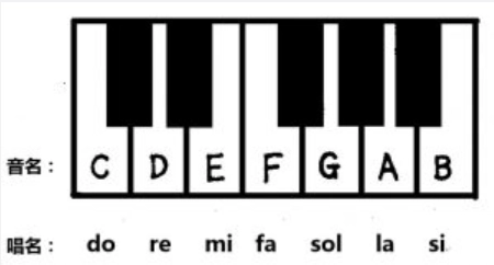 - 音名: C D E F G A B 也叫基本音级,一个音级到下一个的距离为“八度”,do re mi fa sol la si 这些音名多用于歌唱,故叫唱名。
