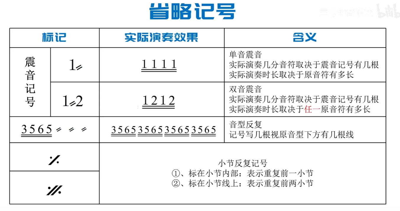 - 小节: 在乐曲中,由一个强拍到次一强拍之间的部分。