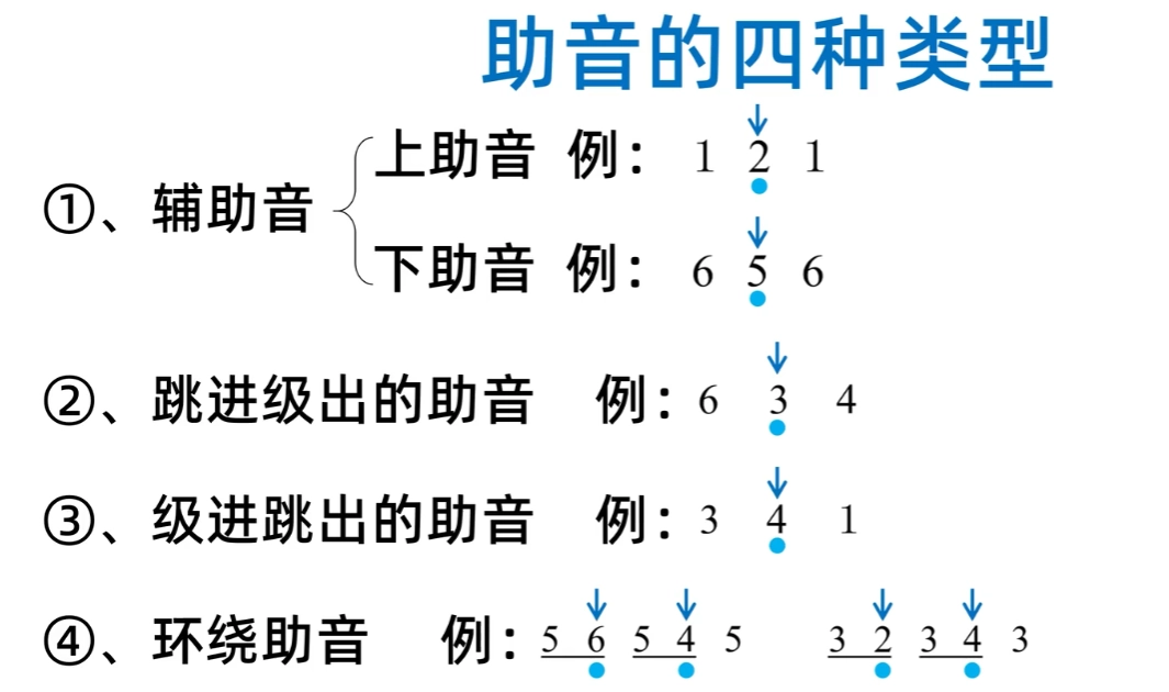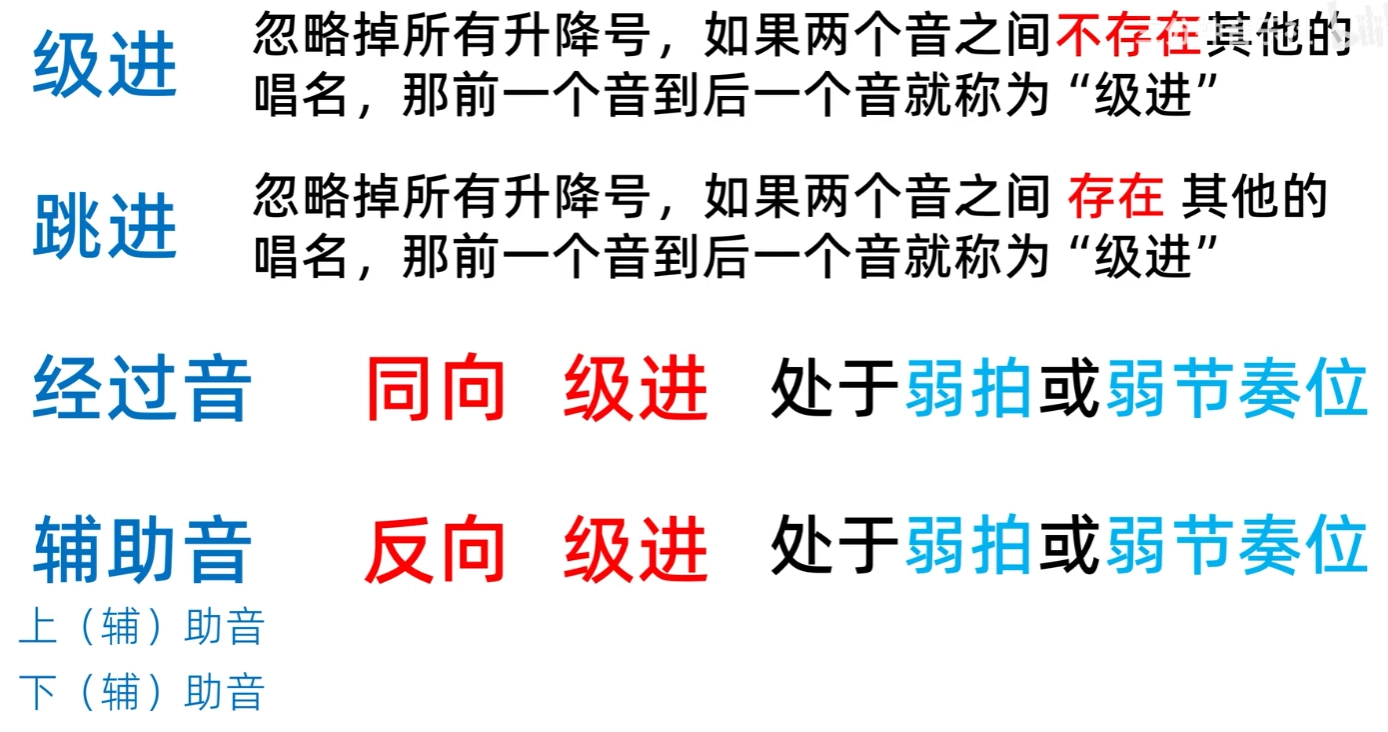 - 升级音级: 将基本音级升高半音,如#C、#D、相反是降级音级。
