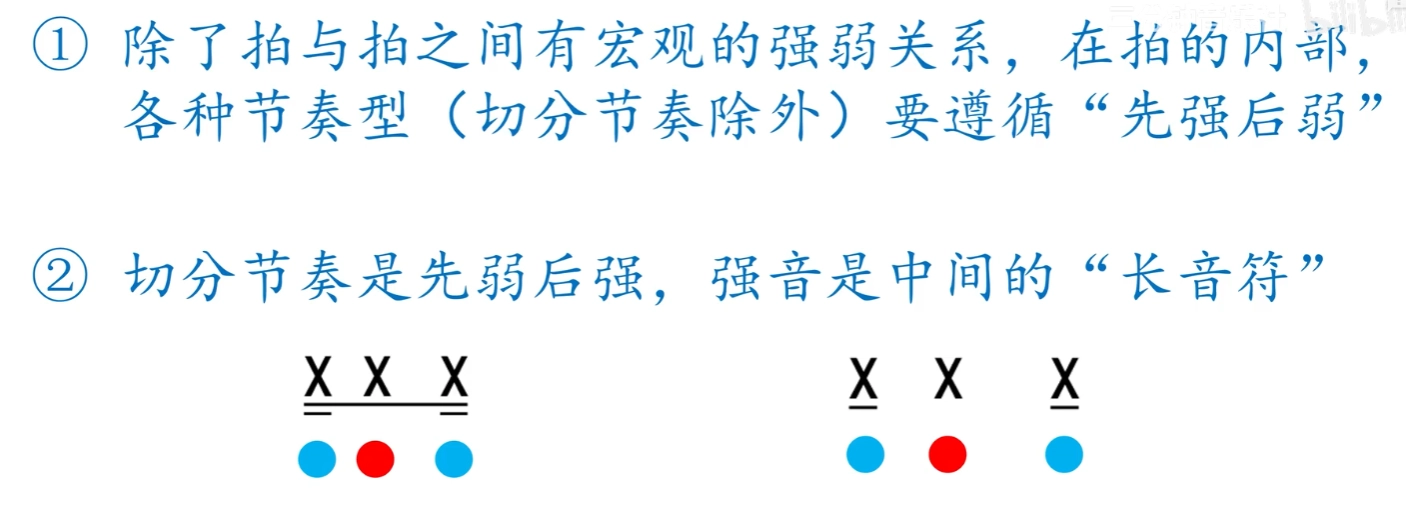 - 节奏: 用强弱组织起来的音的长短关系。