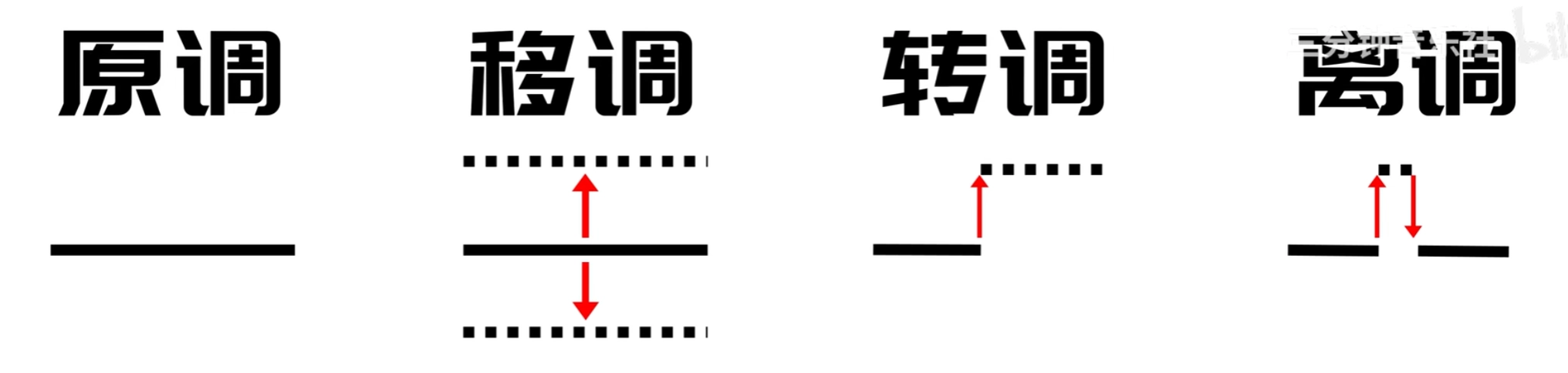 - 原调、移调、转调、离调: