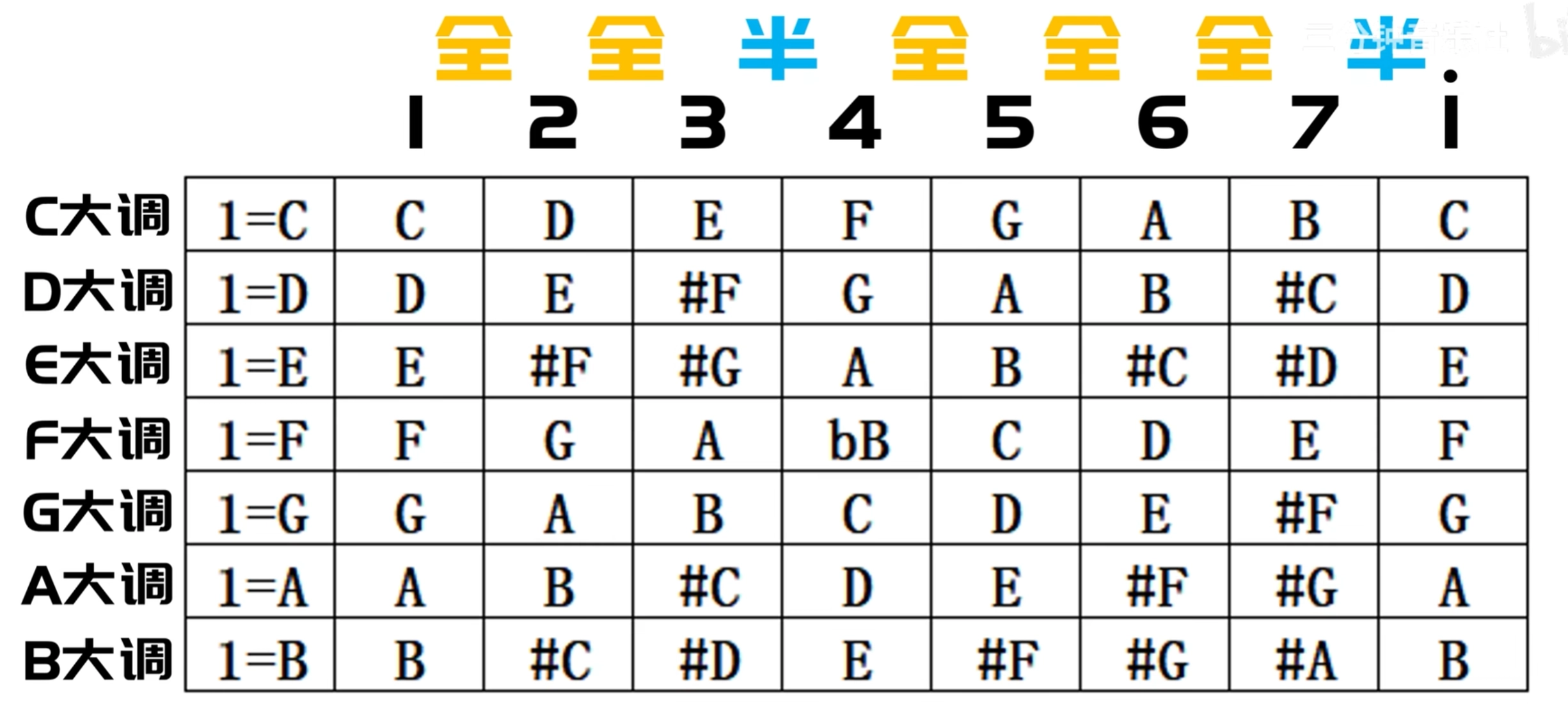 - 全音: 半音和半音相加。