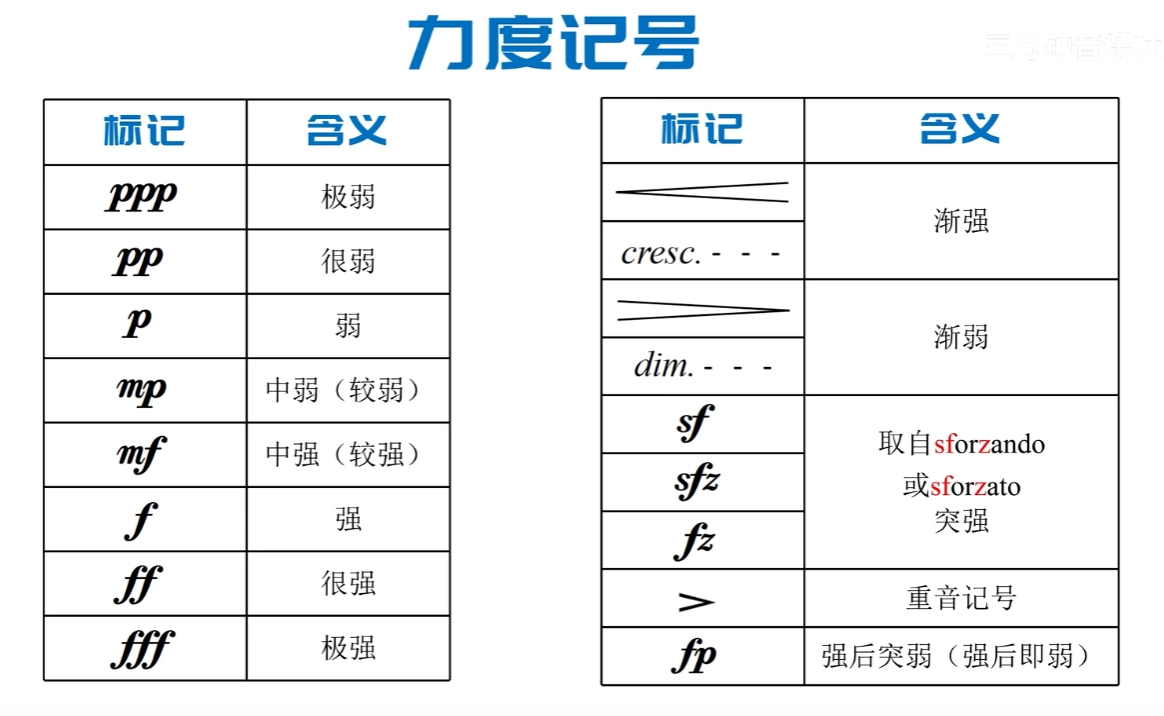 - 拍号: 表示拍子的记号。拍号用分数的形式标记。